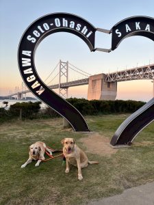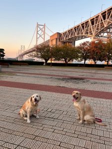 日曜日にゆっちゃんとドナちゃんを連れて車で瀬戸大橋記念公園に公園デビュー。見るもの全て興味津々で写真もなかなか上手に撮れませんでした。