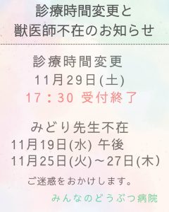 11月25日(火)から27日(木)までみどり先生が不在です。