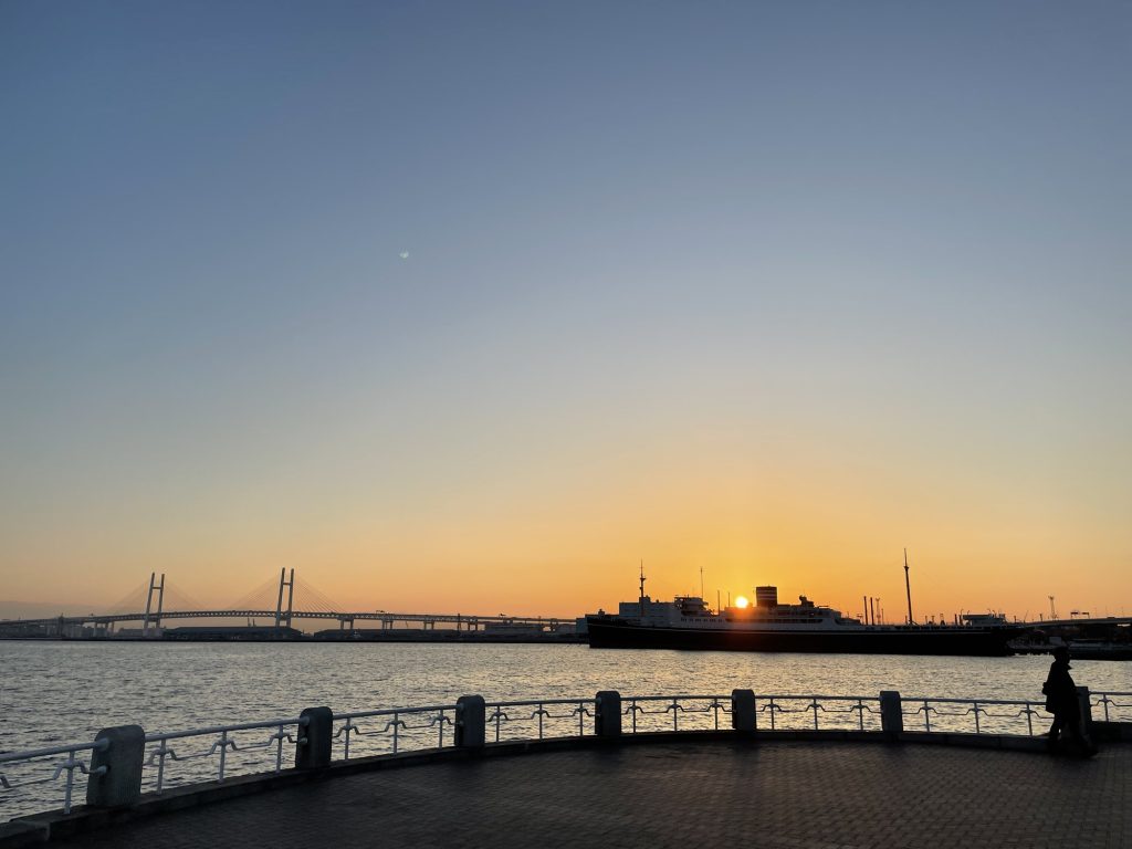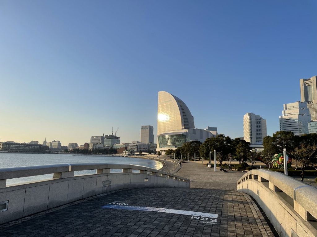 朝早く起きて横浜港をランニング